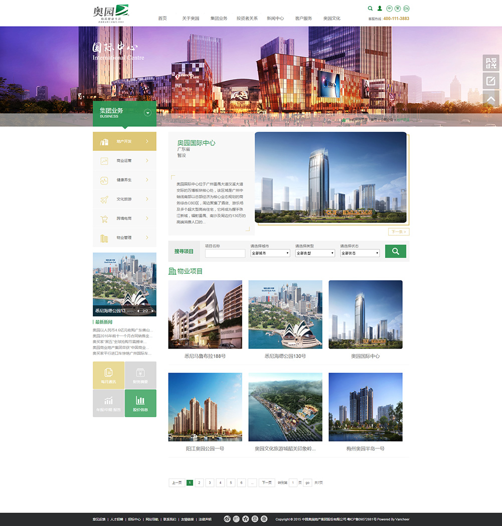 中國(guó)奧園地產(chǎn)集團(tuán)作為復(fù)合地產(chǎn)、中國(guó)主題地產(chǎn)創(chuàng)新。開(kāi)創(chuàng)性地將房地產(chǎn)開(kāi)發(fā)與創(chuàng)造消費(fèi)者生活方式密切結(jié)合,成功地實(shí)踐了運(yùn)動(dòng)復(fù)合、教育復(fù)合、商業(yè)綜合體復(fù)合、健康養(yǎng)生復(fù)合、文化旅游復(fù)合、跨境電商復(fù)合等多種復(fù)合地產(chǎn)開(kāi)發(fā)模式。