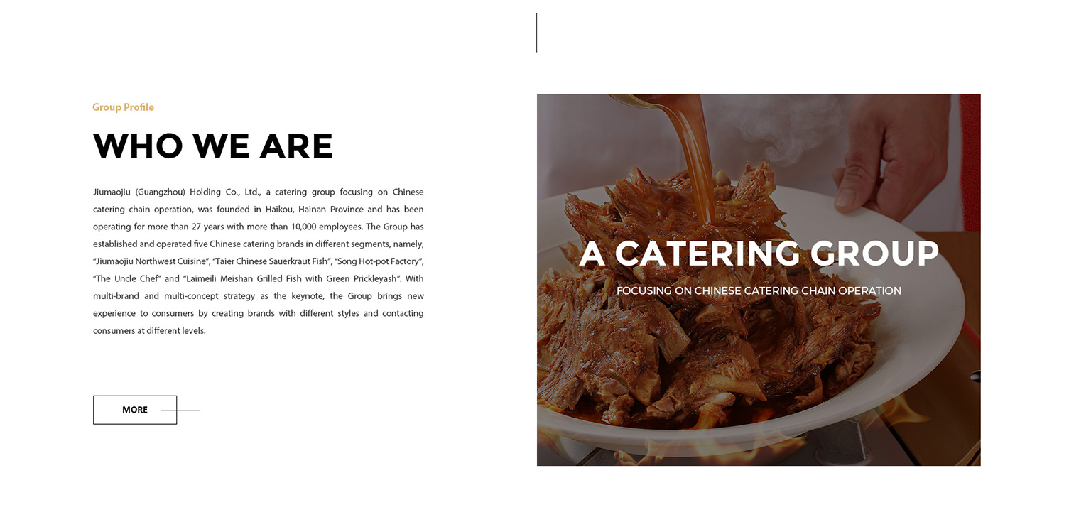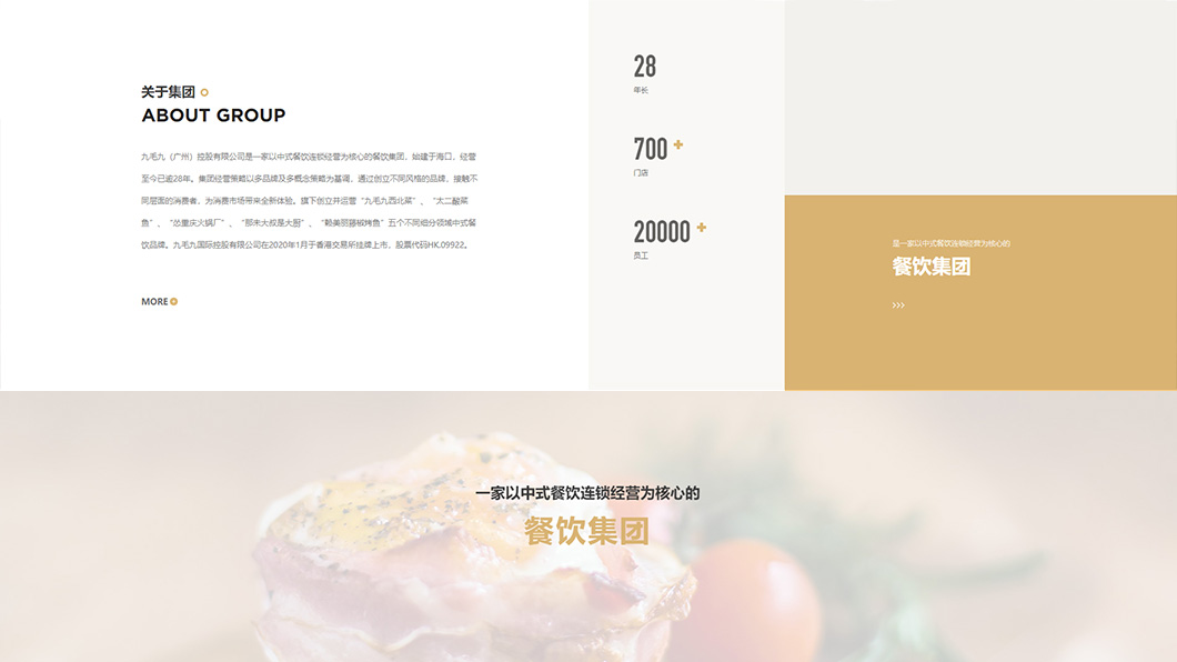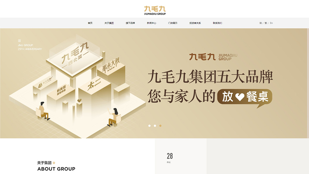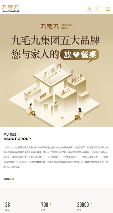 九毛九(廣州)控股有限公司是一家以中式餐飲連鎖經(jīng)營(yíng)為核心的餐飲集團(tuán),經(jīng)營(yíng)至今已逾28年,旗下創(chuàng)立并運(yùn)營(yíng)“九毛九西北菜”、“太二酸菜魚(yú)”、“慫重慶火鍋廠”、“那未大叔是大廚”、“賴美麗藤椒烤魚(yú)”五個(gè)品牌......為了更好地體現(xiàn)公司形象和實(shí)力,展示旗下品牌,給廣大用戶提供門(mén)店查詢、資訊動(dòng)態(tài)等信息服務(wù),需要有一個(gè)現(xiàn)代、時(shí)尚、端莊、簡(jiǎn)潔的官方網(wǎng)站。